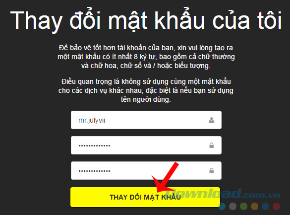 Tại giao diện mới, nhập mật khẩu mới vào các khung tương ứng rồi chọn vào Thay đổi mật khẩu.