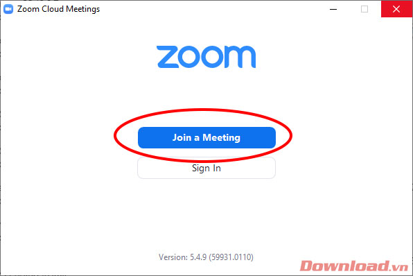Để vào phòng học Zoom trên PC, đầu tiên các bạn khởi động Zoom lên. Ở cửa sổ hiện ra, nhấn chọn nút Join a Meeting.