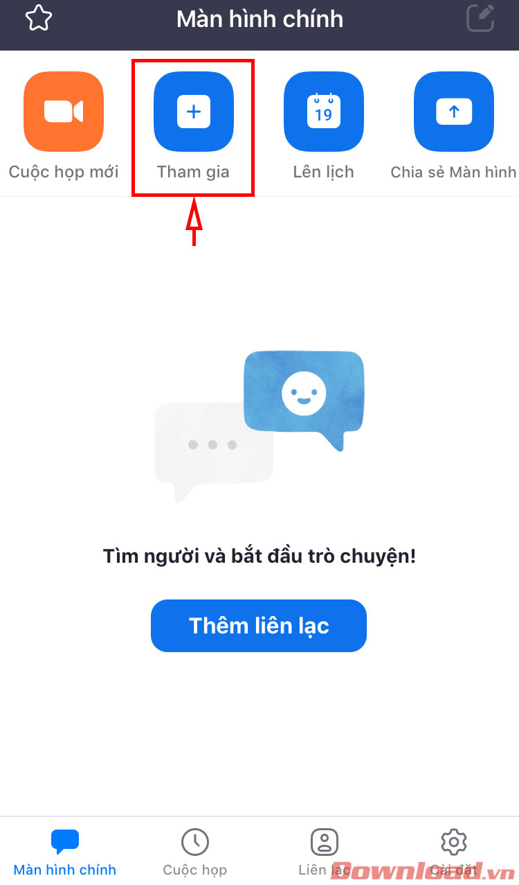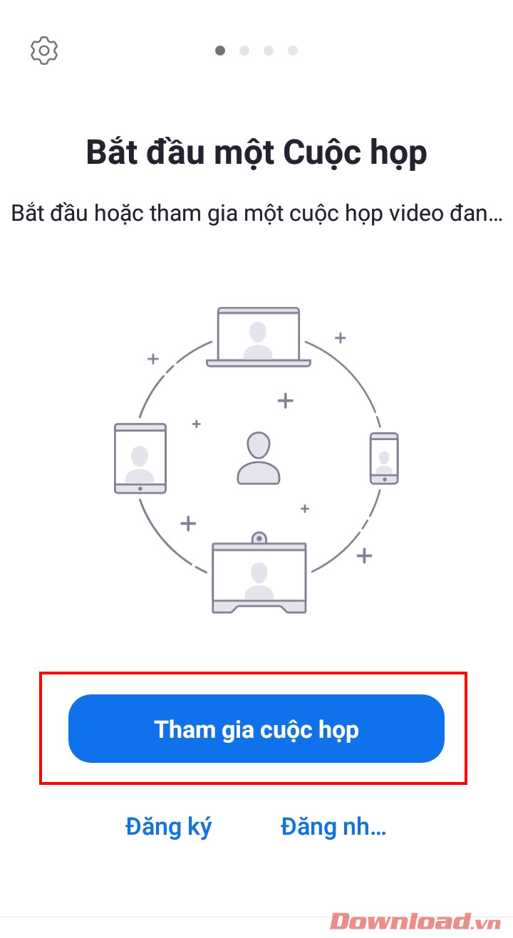 Đối với các thiết bị chạy hệ điều hành Android, các bạn cũng tải và cài đặt ứng dụng Zoom, sau đó mở ứng dụng lên. Ở màn hình chính, nhấn chọn nút Tham gia cuộc họp.