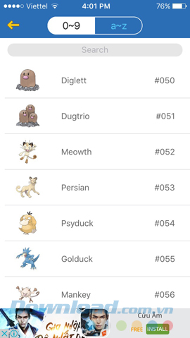 Bước 5: Nếu muốn kiểm tra thêm các Pokemon khác, các bạn cũng làm tương tự. Có thể sử dụng mục tìm kiếm và đánh vào đó tên của Pokemon (nếu bạn nhớ được).