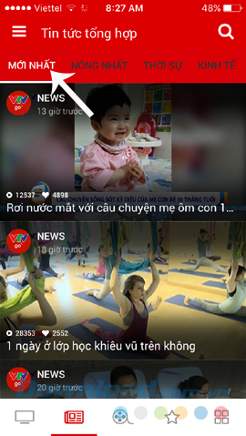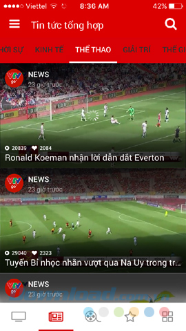 • Biểu tượng tờ báo: Mục tin tức tổng hợp với rất nhiều phần tin khác nhau, cực đa dạng và đầy đủ (tin mới nhất, tin nóng nhất, tin Thể thao, kinh tế hay giải trí...).