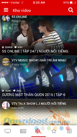 • Biểu tượng cuộn phim: Đây là kho video, bao gồm rất nhiều các video, clip được người dùng đánh giá cao và sắp xếp theo thứ tự lượt yêu thích từ cao xuống thấp.