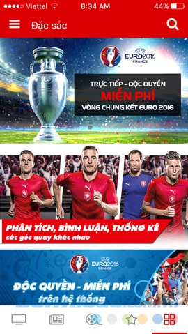 • Biểu tượng 4 ô vuông: Các chương trình đặc sắc nhất, hay nhất mà người dùng không thể từ chối, đặc biệt là khi nó được cung cấp miễn phí như vòng chung kết Euro 2016 sắp tới đây.