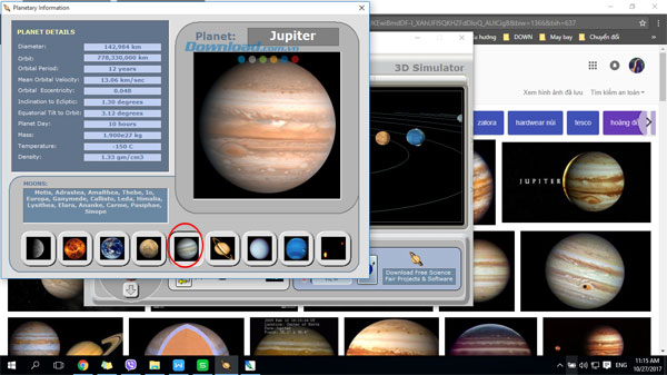 Sau khi xem xong các thông tin cơ bản hãy tắt cửa sổ Planetary Information đi để quay lại giao diện chính quan sát chuyển động của Sao Mộc trên hệ mặt trời.