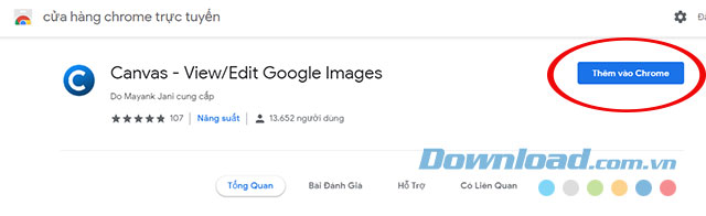 Nhấn tải Canvas theo đường dẫn phía trên. Ngay sau khi nhấn Tải về bạn sẽ được đường dẫn cài đặt trên kho tiện ích của Google Chrome.