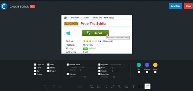 Khi chỉnh sửa xong hãy nhân nút Download để tải ảnh đã chỉnh sửa về máy tính. Với tính năng chỉnh sửa ảnh trực tiếp này bạn sẽ không cần phải mở thêm 1 ứng dụng khác mà sẽ chỉnh sửa ảnh trực tuyến 1 cách rất dễ dàng.
