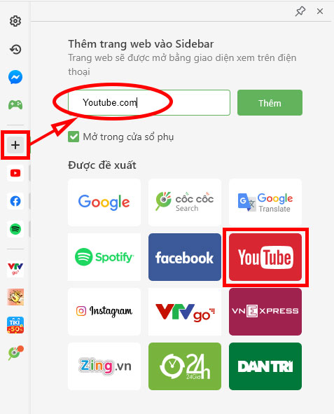Tìm hiểu thêm »Sidebar là một tính năng mới khá thú vị trên Cốc Cốc giúp người dùng có thể thực hiện các thao tác trên 2 cửa sổ trình duyệt khác nhau cùng lúc. Bài viết dưới đây sẽ hướng dẫn các bạn cách xem youtube trên cửa sổ phụ với Sidebar cực kỳ đơn giản.