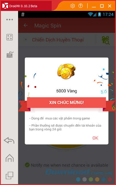 Để có thể nhận thưởng cho game nào các bạn cần có sẵn bản cài đặt game và tài khoản chơi game đó. Ví dụ, ở đây Download.vn muốn nhận thưởng cho tài khoản trong game Chiến Dịch Huyền Thoại nên sẽ phải có sẵn game đó trong giả lập rồi.