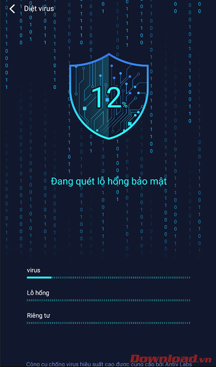 Ứng dụng sẽ tự động quét virus, hãy chờ 1 lúc nhé.