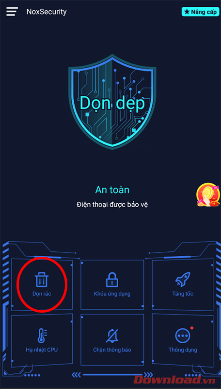 Chức năng thứ 2 của Nox Security đó là dọn rác trong bộ nhớ điện thoại của bạn. Để sử dụng tính năng này, hãy nhấn vào nút Dọn rác ở màn hình chính.