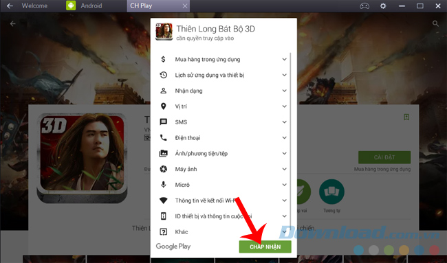 Tiếp tục chọn vào Chấp nhận - Accept để bắt đầu cài game Thiên Long Bát Bộ vào máy tính.