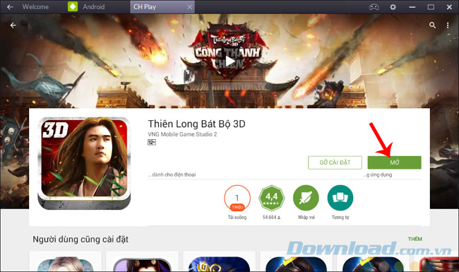 Bước 5: Chờ quá trình cài đặt hoàn tất rồi chọn Mở - Open để bắt đầu vào chơi.
