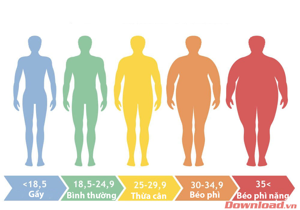 BMI = (cân nặng) / (chiều cao x chiều cao)