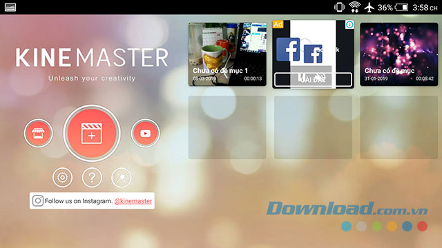 Tải và cài đặt KineMaster cho thiết bị của bạn theo đường dẫn tải phía trên hoặc vào trực tiếp App Store và Google Play để tìm kiếm KineMaster sau đó cài đặt.
