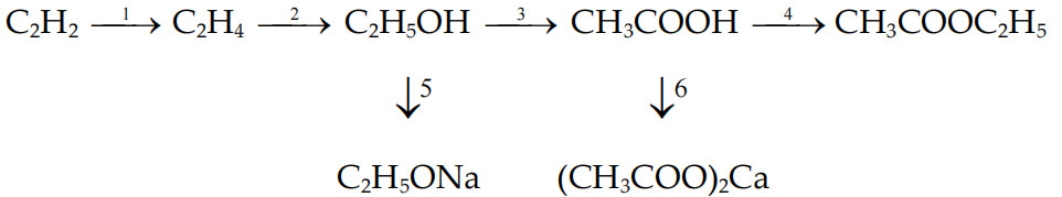 (1) C2H2 + H2 \overset{t^{\circ }, xt }{\rightarrow}\(\overset{t^{\circ }, xt }{\rightarrow}\)C2H4
