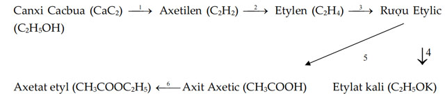 (3) C2H4 + H2O \overset{t^{\circ }, axit }{\rightarrow}\(\overset{t^{\circ }, axit }{\rightarrow}\)C2H5OH