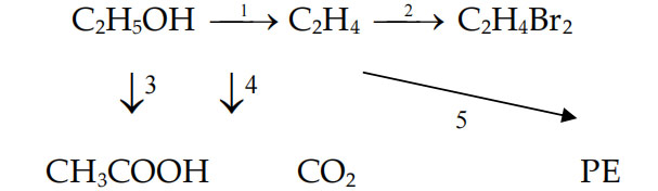 (1) C2H5OH \overset{t^{\circ }, xt }{\rightarrow}\(\overset{t^{\circ }, xt }{\rightarrow}\) C2H4 + H2O