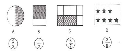 Câu 1. Nối mỗi hình với phân số chỉ phần tô đậm của hình đó: