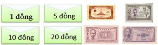 Lâm có một số phong bì đựng tiền xưa loại 1đồng, 5 đồng, 10 đồng và 20 đồng.