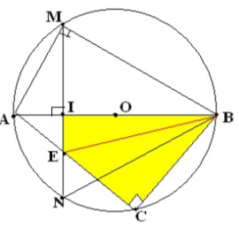 Kẻ dây MN ^AB tại I. Gọi C là một điểm tùy ý thuộc cung lớn MN sao cho C không trùng với M, N và B. Nối AC, cắt MN tại E.