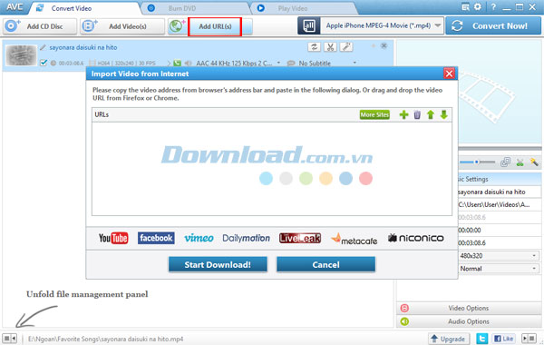 Ngoài ra, nếu muốn nhập video từ web, vui lòng lựa chọn Add URL(s) để thêm đường dẫn URL của video.