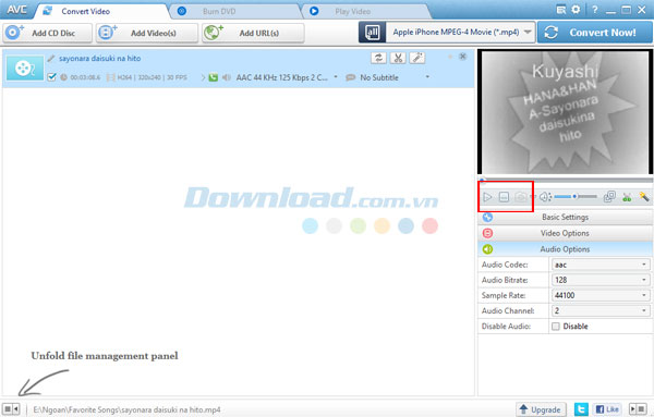Sau đó, bạn có thể xem trước video trước khi tiến hành chuyển đổi thực sự nhờ trình phát được tích hợp sẵn.