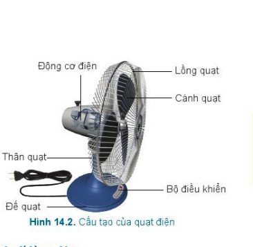 Hãy cho biết chức năng của các bộ phận cấu tạo lên quạt điện hình 14.2.