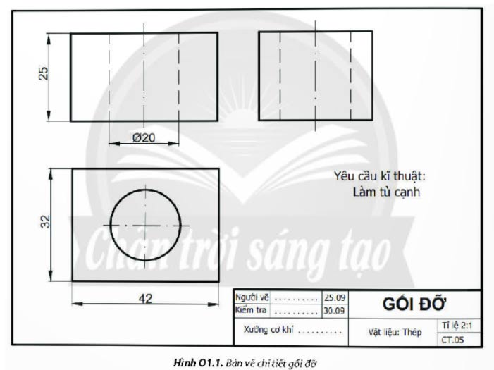 Đọc bản vẽ chi tiết gối đỡ ở Hình O1.1 theo trình tự đã học