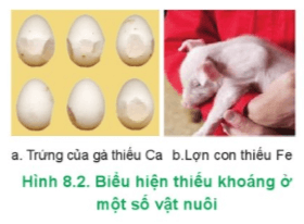 Luyện tập 3: Hãy nêu các biểu hiện bệnh của vật nuôi do thiếu khoáng trong hình 8.2. Phòng các bệnh này cho vật nuôi bằng cách nào?