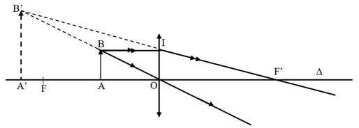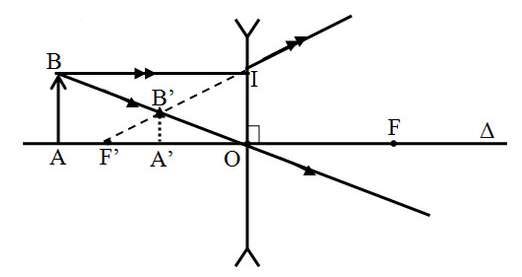 – Xét trường hợp vật sáng AB đặt vuông góc với trục chính của thấu kính hội tụ.