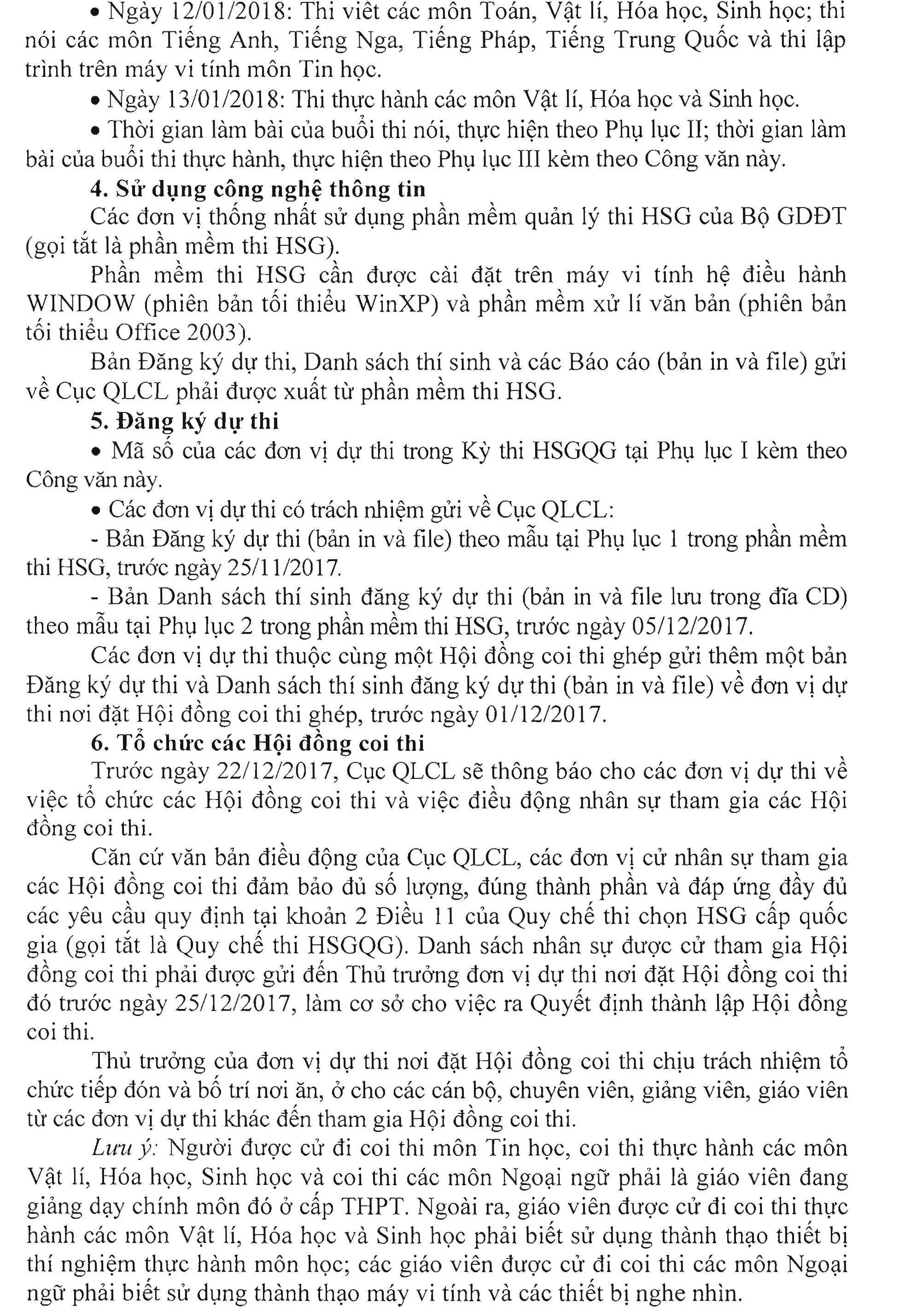 Ngày 13/10/2017, Cục Quản lý chất lượng ban hành Công văn 1456/QLCL-QLT về tổ chức Kỳ thi chọn học sinh giỏi quốc gia trung học phổ thông năm 2018. Theo đó, quy định kỳ thi HSGQGTHPT năm 2018 được tổ chức thành 3 buổi thi, thời gian quy đinh như sau: