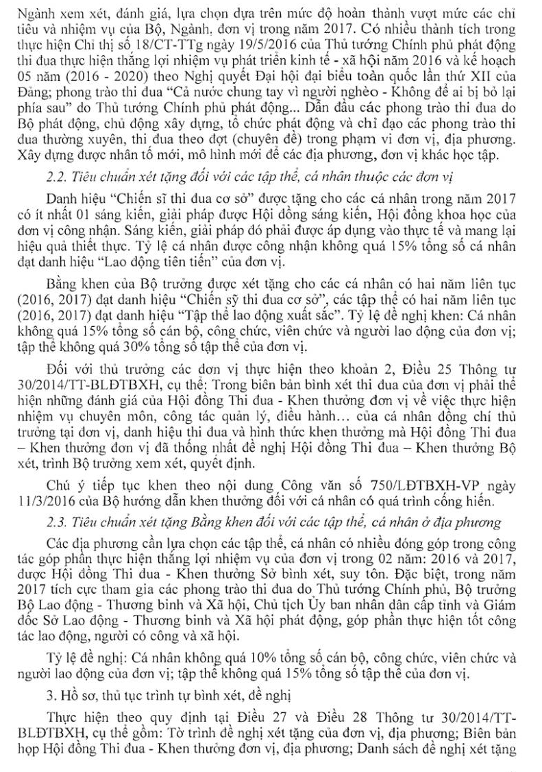 Tìm hiểu thêm »Để động viên, khích lệ các tập thể, cá nhân có thành tích xuất sắc trong tham gai các phong trào thi đua thực hiện thắng lợi nhiệm vụ công tác năm 2017. Ngày 31/10/2017, Bộ Lao động - Thương binh và Xã hội ban hành Công văn 4534/LĐTBXH-VP về hướng dẫn xét, đề nghị khen thưởng dịp tổng kết năm 2017. Theo đó, công văn hướng dẫn chi tiết nguyên tắc khen thưởng, tiêu chuẩn khen thưởng, hình thức khen thưởng..... Nội dung chi tiết, mời các bạn cùng tham khảo nội dung chi tiết công văn tại đây.