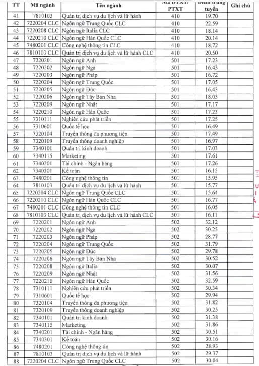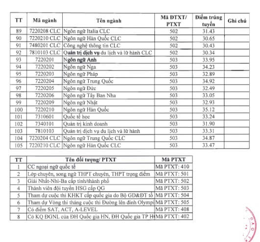 | 24 | Quản trị dịch vụ Du lịch và Lữ hành (tiếng Anh) CLC | 152 | 79 | 73 | 132,820,000 | |||
