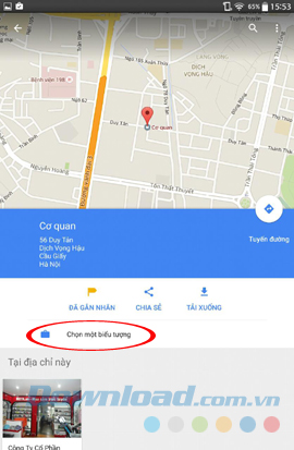 Bước 3: Trong phần chi tiết của địa điểm vừa được đánh dấu, các bạn có thể nhìn thấy phần Chọn một biểu tượng, click vào đó. Giao diện mới xuất hiện với một số stickers để các bạn lựa chọn. Chỉ cần chạm vào biểu tượng muốn dùng, sau đó chọn Lưu.