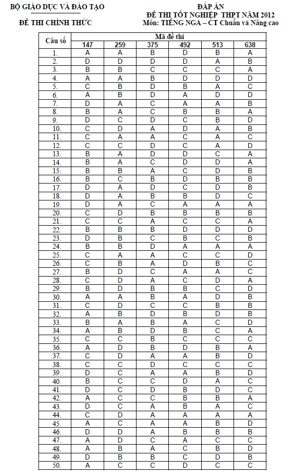 Tìm hiểu thêm »Đáp án đề thi tốt nghiệp THPT tiếng Nga dành cho hệ chương trình chuẩn và nâng cao năm học 2012