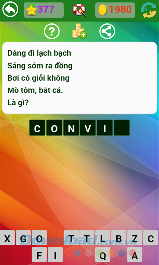 Tìm hiểu thêm » Hỗ trợ qua ZaloChúng ta đã cùng nhau vượt qua chặng đường khá xa trong game Đố vui dân gian, thông qua đó tích lũy cho các bạn khá nhiều kiến thức bổ ích về mọi khía cạnh của cuộc sống.
