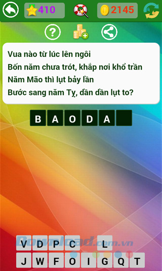 Tìm hiểu thêm » Hỗ trợ qua ZaloGame Đố vui dân gian ngày càng cuốn hút được nhiều người chơi bởi sự hóm hỉnh trong từng câu hỏi, giúp người chơi vừa giải trí vừa tích lũy được thật nhiều kiến thức về văn hóa, dân gian của dân tộc Việt Nam.