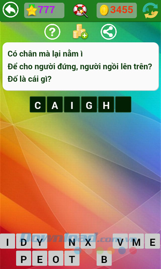 Tìm hiểu thêm » Hỗ trợ qua ZaloĐể vượt qua gần 800 câu hỏi trong trò chơi Đố vui dân gian chắc hẳn bạn chơi cũng không ít lần gặp khó khăn ở một số câu hỏi nào đó đúng không ạ? Ngay cả bản thân tôi cũng vậy, đã có những câu loay hoay mãi mới tìm ra đáp án, nhưng khi tìm ra đáp án lại cảm thấy rất vui mừng và thú vị phải không các bạn?