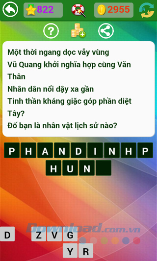 Hôm nay, Download.vn sẽ cùng bạn chinh phục tiếp chuỗi câu hỏi từ 811 đến 849. Mời bạn tham khảo bài viết dưới đây để nhanh chóng tìm ra lời giải cho câu hỏi của mình trong trò chơi Đố vui dân gian này nhé: