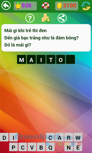 Nhưng chắc hẳn trong số bạn chơi không ít lần gặp phải "bế tắc" mãi không tìm ra đáp án cho câu hỏi của mình. Những lúc như thế bạn không cần phải lo lắng, Download.vn sẽ giúp bạn tìm ra câu trả lời nhanh nhất cho câu hỏi của mình trong trò chơi Đố vui dân gian. Mời bạn cùng chúng tôi chinh phục chuỗi câu hỏi từ 931 cho tới 969 trong bài viết sau đây: