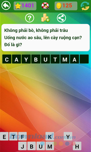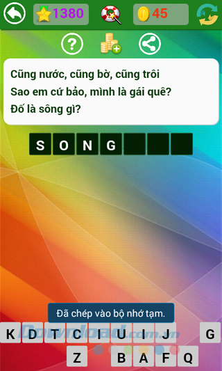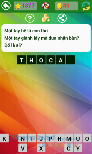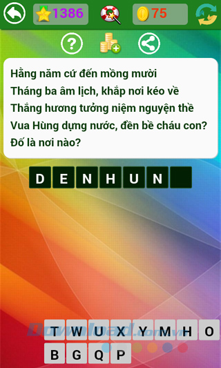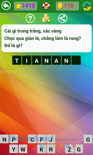 Tìm hiểu thêm » Hỗ trợ qua ZaloTrò chơi Đố vui dân gian vẫn đang tiếp tục nhận được sự ủng hộ nhiệt tình của người chơi, bởi lối chơi đơn giản nhưng đem lại cho chúng ta lượng kiến thức khổng lồ. Thông qua trò chơi này các bạn vừa có thể chơi vừa có thể tích lũy cho mình thêm kiến thức về mọi lĩnh vực trong cuộc sống.