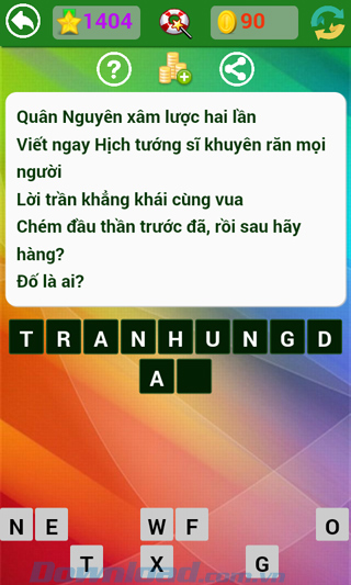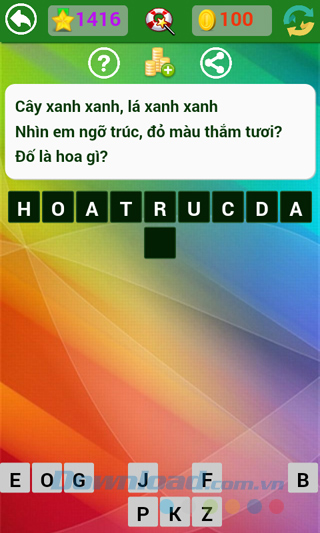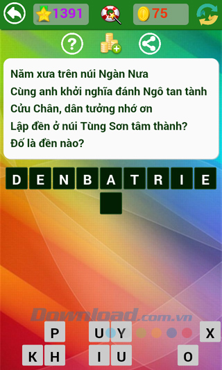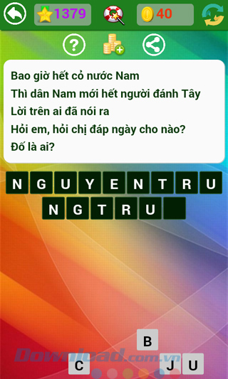 Vậy cho nên, Download.vn sẽ tiếp tục mang đến cho bạn những đáp án "nóng hổi" của game Đố vui dân gian, chúng tôi luôn đưa ra đáp án Đố vui dân gian sớm nhất và chính xác nhất, đã được đội ngũ biên tập chơi và đưa ra đáp án nên các bạn hoàn toàn có thể tin tưởng vào đáp án của chúng tôi. Mời các bạn cùng chinh phục chuỗi câu hỏi từ 1375 cho tới 1419 để tìm ra đáp án nhanh nhất nhé: