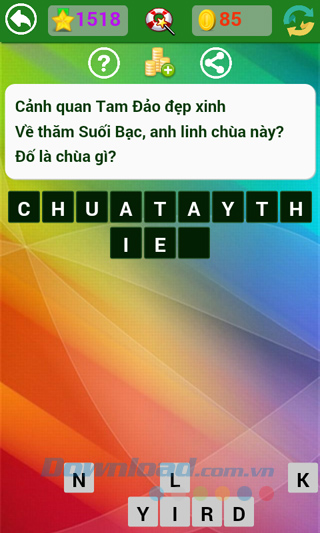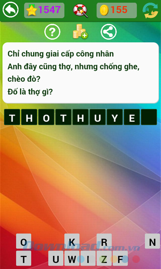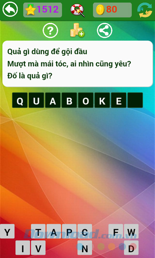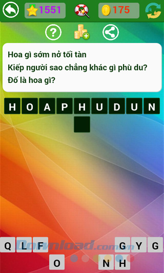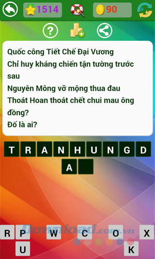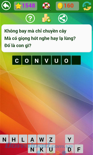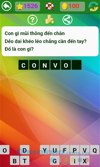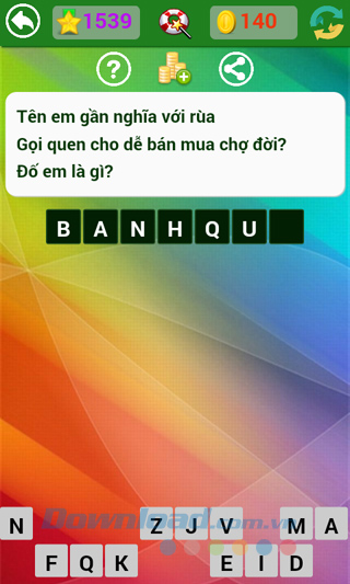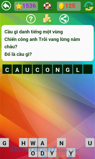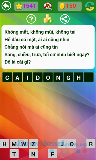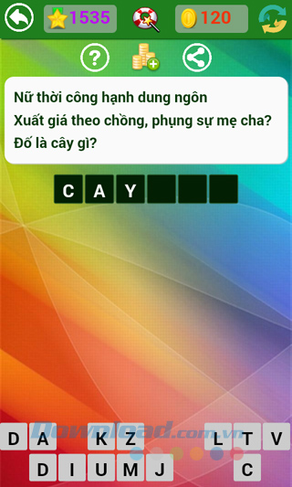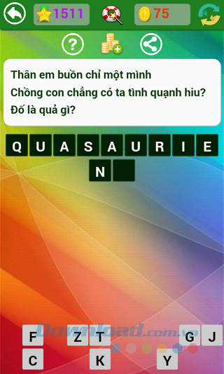 Tìm hiểu thêm » Hỗ trợ qua ZaloNhà phát hành vẫn đang tiếp tục đưa ra những câu hỏi mới, thú vị hơn, hóc búa hơn để thử tài hiểu biết sâu rộng của người chơi. Kho tàng kiến thức thực sự rất rộng lớn, có những câu dễ với người này, lại khó với người kia, làm cho người chơi game Đố vui dân gian không ít lần "mất ăn mất ngủ" tìm mãi không ra câu trả lời.