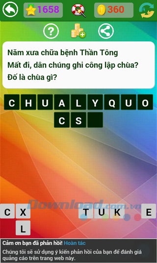 Những lúc như vậy hãy truy cập vào Download.vn để nhanh chóng tìm ra đáp án cho câu hỏi của mình. Hôm nay, chúng tôi sẽ giúp các bạn chinh phục chuỗi câu hỏi từ 1645 cho tới 1689 để các bạn vượt qua được thật nhiều câu hỏi trong trò chơi này: