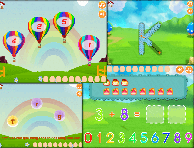 Các tính năng chính trong ứng dụng Dạy bé học chữ cái - Học số