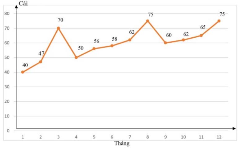 Bài 2. Số lượng tivi bán được của một cửa hàng trong một năm được biểu diễn bằng sơ đồ đoạn thẳng sau: