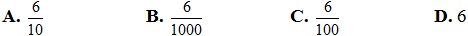A. 0,76 B. 7,6 C. 7,06 D. 7,006