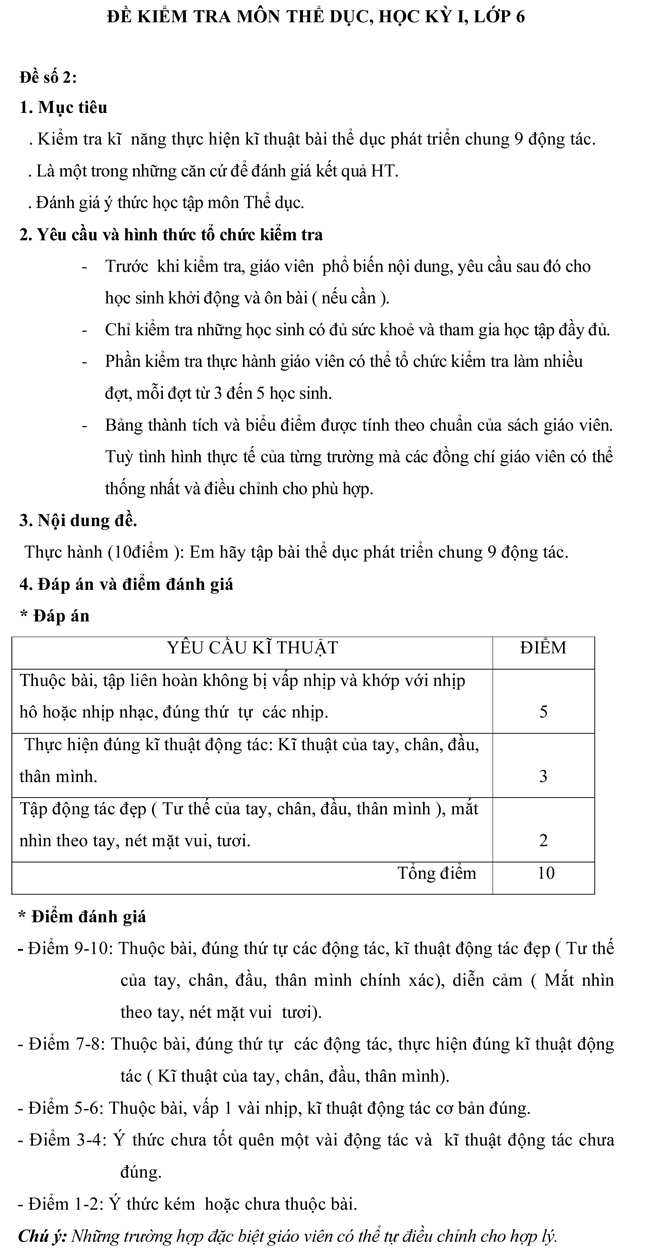 Đề kiểm tra học kì I dành cho học sinh THCS lớp 6 môn Thể dục - Đề số 2