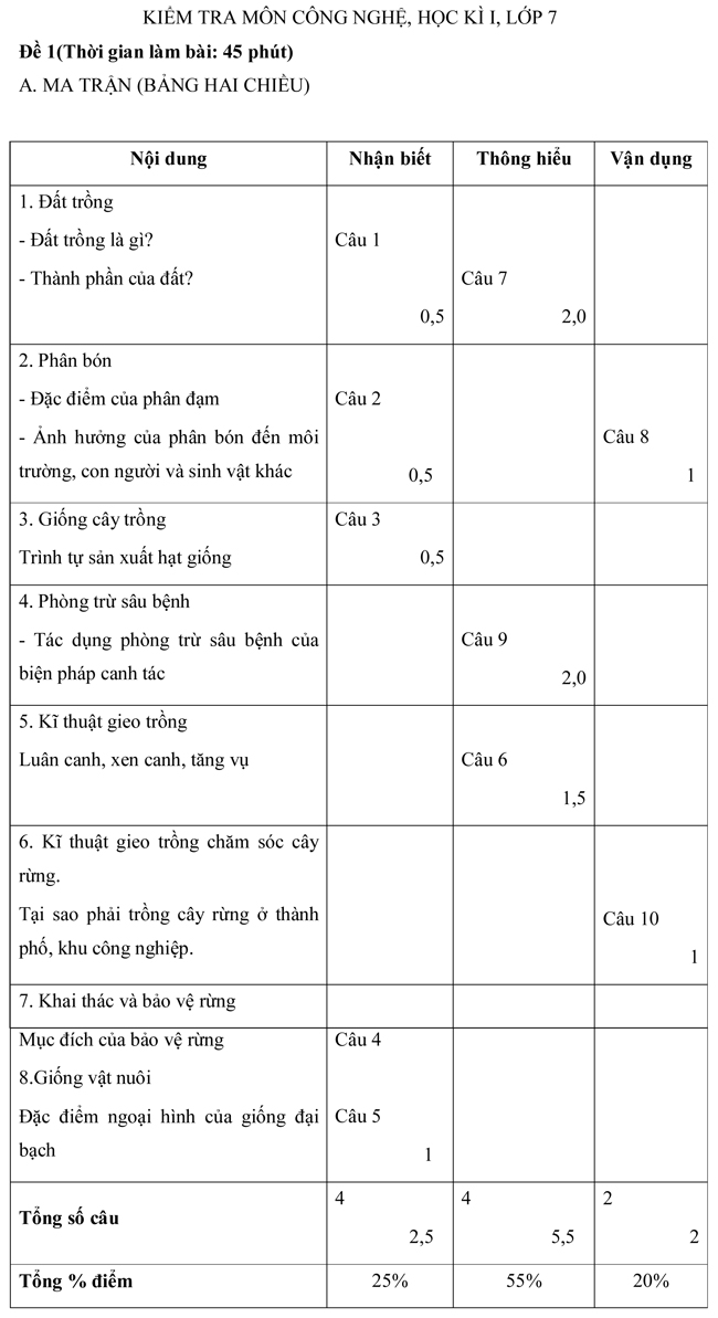 Tìm hiểu thêm »Đề kiểm tra môn Công nghệ học kì I dành cho học sinh THCS lớp 7 - Đề số 1