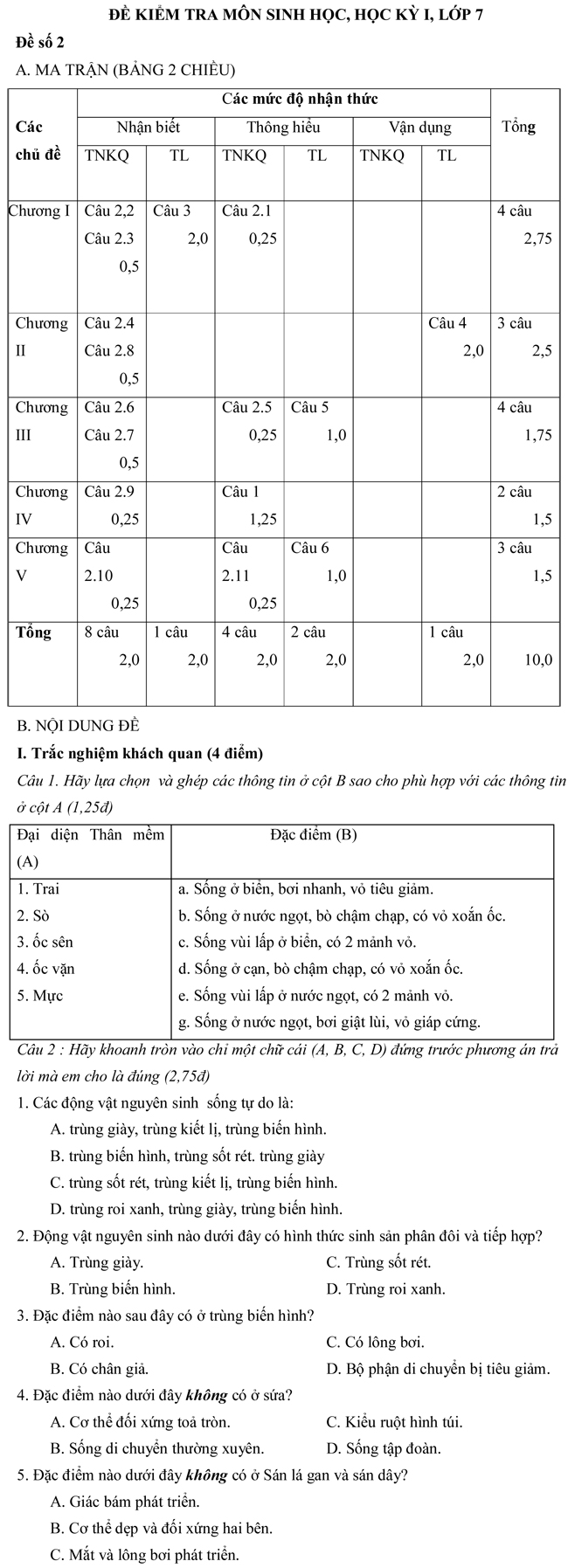 Tìm hiểu thêm »Đề kiểm tra học kì I môn Sinh học dành cho học sinh THCS lớp 7 - Đề số 2